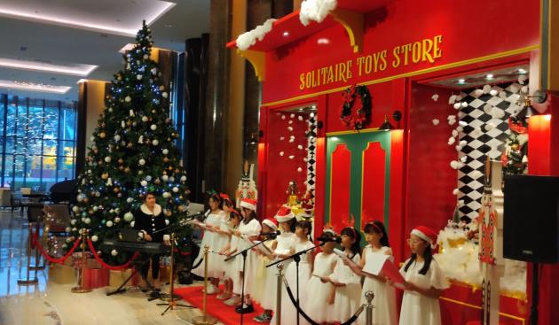 Untuk mendukung kemeriahan natal, JHL Solitaire mendekorasi ruangan loby dengan hiasan pohon natal dan dan juga toko boneka seperti suasana malam natal musim dingin. Boneka-boneka sinterklas itu asli buatan tangan para pengrajin lokal daerah.
