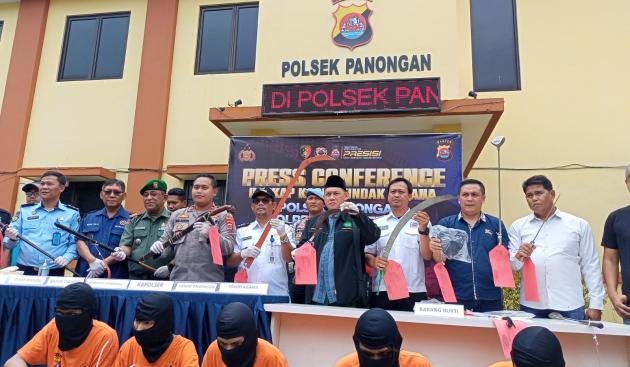 TANGERANGNEWS.com-Polsek Panongan Polresta Tangerang meringkus delapan anggota gangster yang hendak tawuran di Kampung Ciapus, Kecamatan Panongan, Kabupaten Tangerang, pada Minggu, 23 Januari 2023, malam.