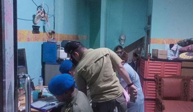 Petugas Satpol PP saat menggerebek tempat pijat plus-plus di Kutabumi, Pasar Kemis, Kabupaten Tangerang, Sabtu 1 April 2023, dini hari. (@TangerangNews / Dimas Wisnu Saputra)