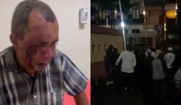 Aksi pengeroyokan itu terekam dalam video berdurasi 27 detik yang tersebar di media sosial. Video itu memperlihatkan seseorang pria paruh baya yang mengenakan sweater berwarna coklat dan celana jeans hitam dikerumuni massa.