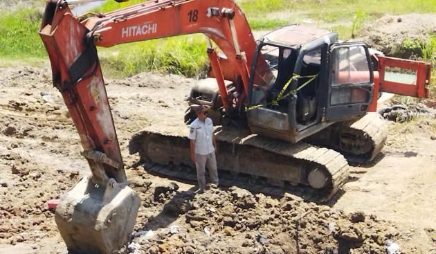 Pihaknya pun turut menyegel dua alat berat dan 10 kendaraan truk dengan menggunakan garis Pol PP (Pol PP Line), untuk dijadikan alat bukti sampai proses pemeriksaan selesai.