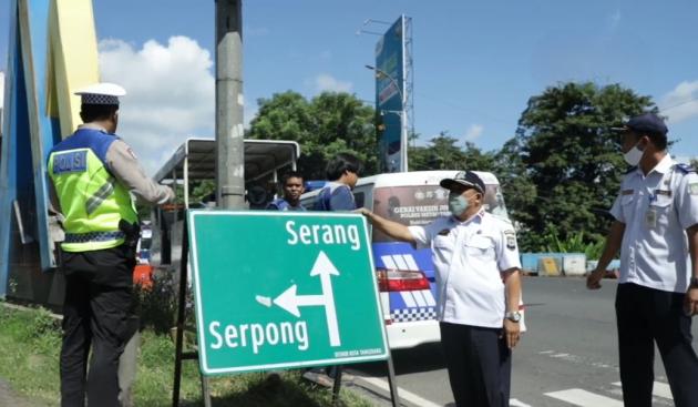 TANGERANGNEWS.com- Jelang memasuki mudik lebaran 2023, Dinas Perhubungan (Dishub) bekerja sama dengam Polres Metro Tangerang Kota memasang rambu pendahulu petunjuk jalan (RPPJ), Selasa 11 April 2023.