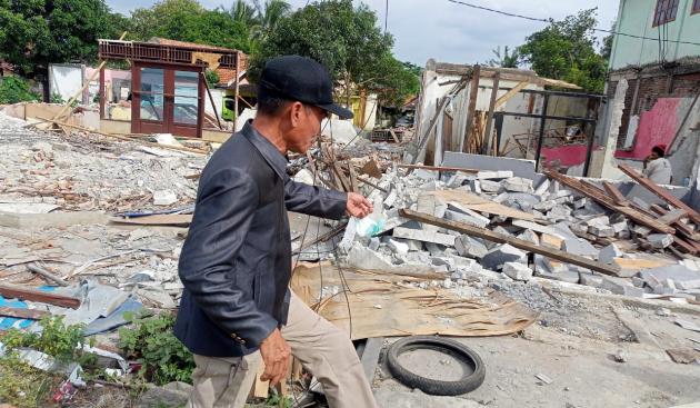 Warga menunjukkan sejumlah bangunan yang sudah digusur di atas tanah sengketa, untuk pembangunan pusat perniagaan di Desa Cikupa, Kecamatan Cikupa, Kabupaten Tangerang, Jumat 12 Mei 2023. (@TangerangNews / Dimas Wisnu Saputra)