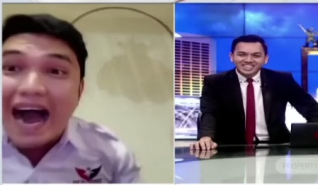Tangkapan layar aksi kocak Aldi Taher saat diwawancari presenter televisi (@TangerangNews / Istimewa)
