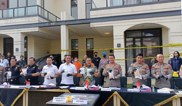 Kepala Badan Reserse Kriminal (Kabareskrim) Polri Komjen Andrianto, dari penggerebekan pabrik ekstasi jaringan internasional ini didapat 11 bungkus besar berisi 25.000 butir ekstasi, dan 2 bungkus klip yang berisi Kapsul diduga ekstasi dengan jumlah 1.000 butir.