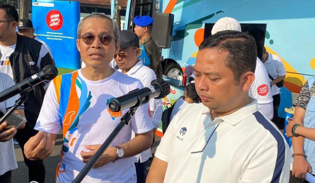 Wakil Ketua KPK Alexander Marwata bersama Wali Kota Tangerang Arief R Wismansyah, di kawasan Car Free Day, Kota Tangerang, Minggu 11 Juni 2023. (@TangerangNews / Rangga Agung Zuliansyah)