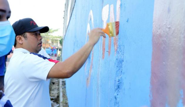 Wali Kota Tangerang Arief R Wismansyah membuka acara lomba mural di Alun-alun Kecamatan Cibodas, Kota Tangerang, Minggu 18 Juni 2023 (@TangerangNews / Istimewa )