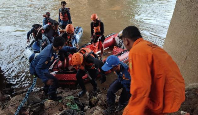 Tim pertama dengan penyisiran di sepanjang aliran Sungai Cisadane menggunakan perahu karet, hingga radius 2 KM dari lokasi kejadian.