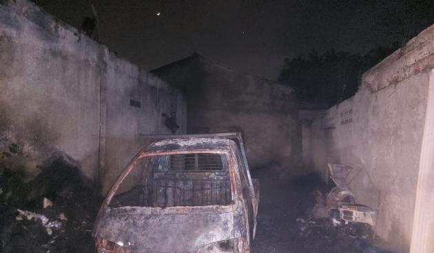Ujat mengatakan, bahwa bangunan yang terbakar yakni gudang taplon alat rumah tangga, gudang penampungan kapal air dan gudang ban mobil.