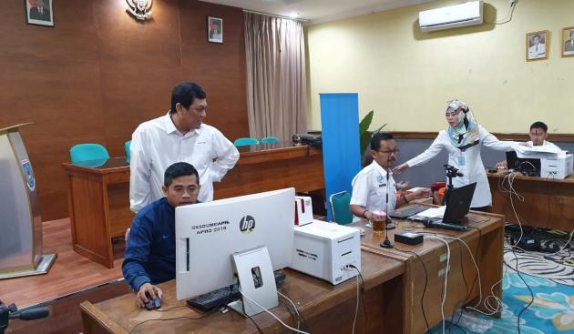 Suasana warga yang mengantre pelayanan keliling KIA di Kantor Kecamatan Pamulang, Jalan Siliwangi No.1, Pamulang Barat, Pamulang, Tangsel, Rabu (26/6/2019). (@TangerangNews / Rachman Deniansyah)