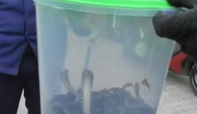 Sebanyak 30 anak ular kobra yang bersarang di salah satu rumah warga Desa Sukatani, Kecamatan Cisoka, Kabupaten Tangerang, diamankan pihak BPBD Kabupaten Tangerang (@TangerangNews / Istimewa )