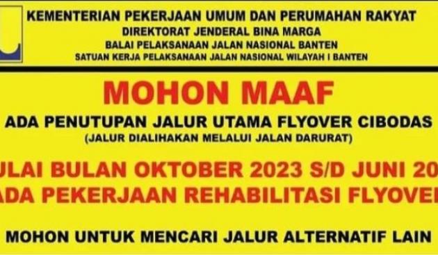 TANGERANGNEWS.com- Flyover Cibodas, Kota Tangerang ditutup imbas proyek rehabilitasi oleh Kementerian Pekerjaan Umum dan Perumahan Rakyat (PUPR).