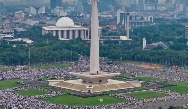 TANGERANGNEWS.com- Ribuan massa memadati area Monumen Nasional (Monas) Jakarta Pusat, DKI Jakarta pada Minggu, 05 November 2023.