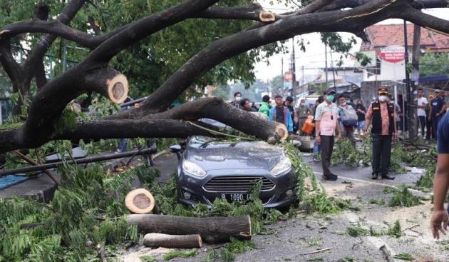 Mobil tertimpa pohon tumbang di Kota Tangerang. (@TangerangNews / Rangga Agung Zuliansyah)