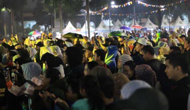 Pasalnya, para warga Kota Tangerang yang datang untuk menonton tetap antusias dan tidak beranjak dari tempatnya meski malam itu tengah diguyur hujan.