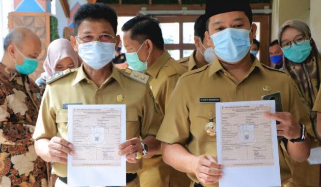 Wali Kota Tangerang Arief R Wismansyah bersama Wakil Wali Kota Tangerang Sachrudin membayar PBB saat pekan panutan pajak yang diselenggarakan Bapenda Kota Tangerang. (@TangerangNews / Istimewa )