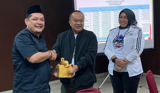 Kepala UPTD Samsat Cikokol Tangerang Dwi Nopriadi Atma Wijaya (kiri) berhasil melampaui target pendapatan pajak tahun 2023 (@TangerangNews / Istimewa )