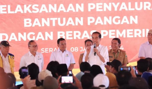 Hal itu dikatakan Jokowi saat meninjau Gudang Beras Bulog (GBB) Umbul Tengah Sub Divre Serang di Jalan Raya Cilegon KM 3,5 Drangong, Kota Serang, Senin, 8 Januari 2024.