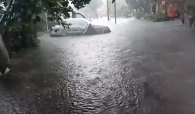 Kondisi banjir di sekitar Jalan Rawa Kambing, Kecamatan Karang Tengah, Kota Tangerang, Senin, 19 Juni 2023 (@TangerangNews / Istimewa )