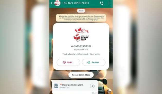 Baru-baru ini, modus penipuan file APK tersebut mengatasnamakan pihak penyelenggara Pemilihan Umum (Pemilu) 2024.
