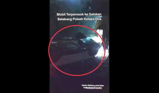 Mobil berpenumpang tiga orang tersebut masuk ke dalam parit yang berlokasi di belakang Polsek Kelapa Dua, Polres Tangsel.