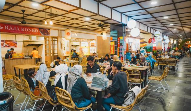 Pengunjung dapat menikmati beragam sajian dari puluhan tenant jajanan makanan dan minuman untuk buka puasa di area semi outdoor foodcourt seperti batagor, gohyong, bakso goreng, cireng, kue balok, es pisang hijau.
