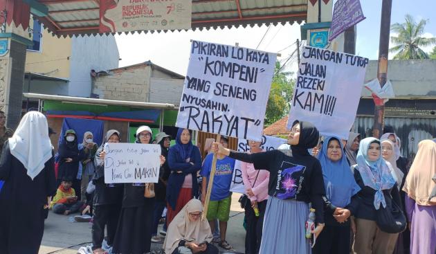 Dalam aksi itu, masyarakat sekitar membentangkan spanduk-spanduk yang berisikan keluhan dan aspirasi mereka terkait penutupan jalan tersebut.
