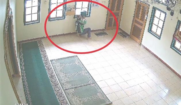 Peristiwa yang terjadi pada Rabu, 12 Juni 2024, sekitar pukul 13.40 WIB itu terekam CCTV di lokasi. Terlihat pelaku mengenakan jaket ojek online beraksi saat musala dalam keadaan sepi.