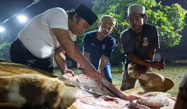 Pemotongan hewan kurban khusus untuk anak stunting itu dilakukan langsung Penjabat (Pj) Gubernur Banten Al Muktabar di Kawasan Sistem Pertanian Terpadu (Sitandu) Dinas Pertanian Pemprov Banten, Kota Serang, Senin 17 Juni 2024, malam.