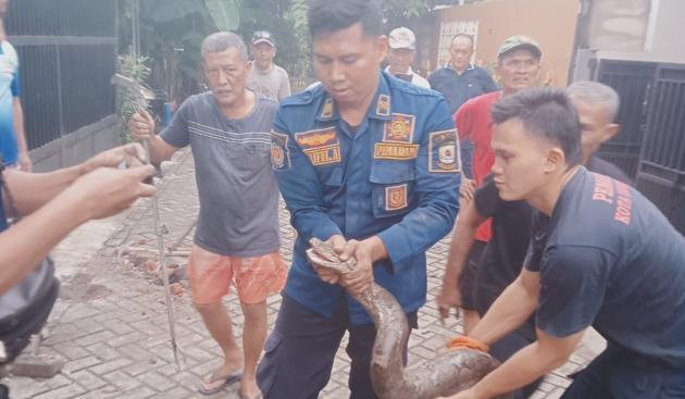 TANGERANGNEWS.com-Sebanyak dua ekor ular jenis sanca sepanjang 6 meter berhasil dievakuasi petugas BPBD Kota Tangerang, Selasa 18 Juni 2024, sore.