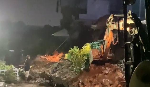 Lokasi longsor yang merusak 3 unit rumah di Puri Serpong, Kelurahan Setu, Kecamatan Setu, Kota Tangsel, Senin 9 Juli 2024. (@TangerangNews / Yanto)