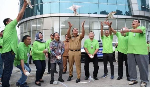 Pj Gubernur Banten Al Muktabar saat perayaan HUT Bank Banten ke-8 di Kantor Pusat Bank Banten, Gedung Iconik, Kota Tangerang, Senin 29 Juli 2024. (@TangerangNews / Rangga Agung Zuliansyah)