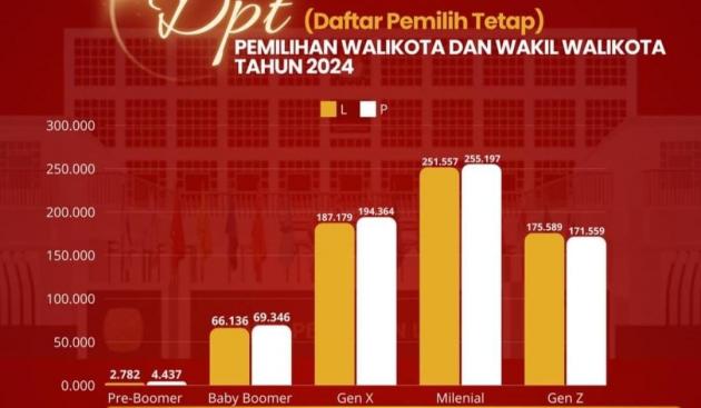 Berdasarkan data, tercatat sebanyak 1.377.828 pemilih akan menggunakan hak pilihnya dalam ajang Pilkada mendatang. Menariknya, komposisi pemilih di Kota Tangerang didominasi oleh generasi Milenial dan Gen Z.