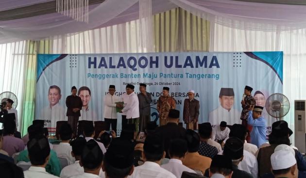 Sekitar 400 ulama se-Pantura Tangerang mendeklarasikan dukungan terhadap Andra Soni-Dimyati Natakusumah sebagai Calon Gubernur dan Wakil Gubernur Banten di Pilkada Serentak 2024, Kamis 24 Oktober 2024. (@TangerangNews / Rangga Agung Zuliansyah)