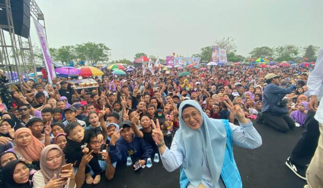 Calon Wakil Bupati Tangerang, Intan Nurul Hikmah saat berswafoto bersama masyarakat Kabupaten Tangerang. Dok. (@TangerangNews / Istimewa)