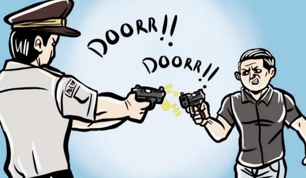 Ia kembali menembak petugas, beruntung peluru yang dilesatkan tidak ada yang kena.