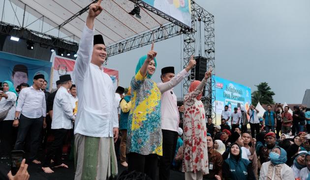 TANGERANGNEWS.com-Kampanye pasangan calon gubernur-wakil gubernur Banten Airin Rachmi Diany-Ade Sumardi menutup kampanye Pilkada Banten dengan menggelar istigasah dan doa bersama di Alun-Alun Pagelaran, Kabupaten Pandeglang, Sabtu 23 November 2024.