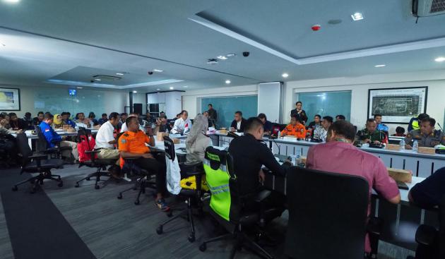 Bandara Soekarno-Hatta menggandeng berbagai pihak, seperti BNPB, Polres Bandara Soetta, TNI, JATSC, OTBAN, BMKG, KKP, Imigrasi Soetta, Pertamina, maskapai penerbangan, dan instansi terkait lainnya.