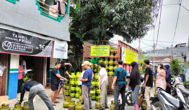 Warga mengantre di salah satu pangkalan gas LPG 3 Kg di Kelurahan Medang, Kecamatan Pagedangan, Kabupaten Tangerang. (@TangerangNews / Redaksi )