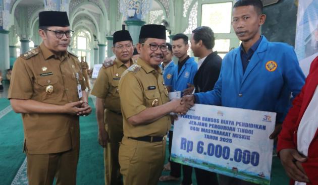 TANGERANGNEWS.com- Pemerintah Kota Tangerang menyalurkan beasiswa kepada 312 mahasiswa dari keluarga prasejahtera. Penyerahan bantuan tersebut dilakukan secara simbolis oleh Wali Kota Tangerang Sachrudin, kepada 13 mahasiswa dalam acara Pengajian Ramadan Pegawai Pemkot Tangerang di Masjid Raya Al-A'zhom pada Senin, 3 Maret 2025.