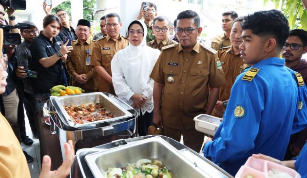 Gubernur Banten Andra Soni meninjau langsung uji coba MBG ini. Didampingi Ketua TP PKK Provinsi Banten Tinawaty, Andra Soni langsung melihat para siswa antre untuk mendapatkan makanan dengan sistem prasmanan.