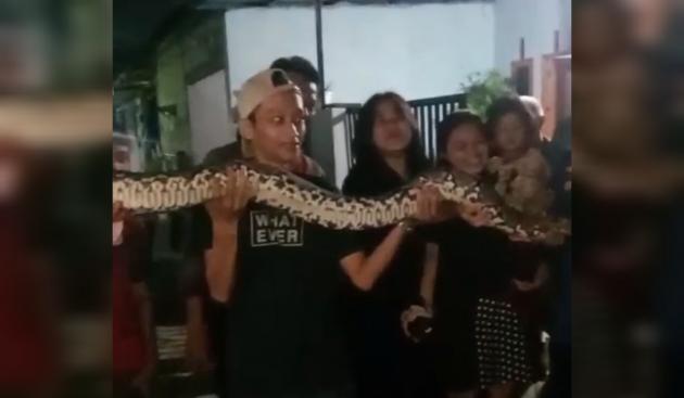 "Berawal dari keluarga saya melihat hewan seperti ular di atas atap, saat dicek lebih dekat bener ular sanca panjang dan besar," ujarnya.