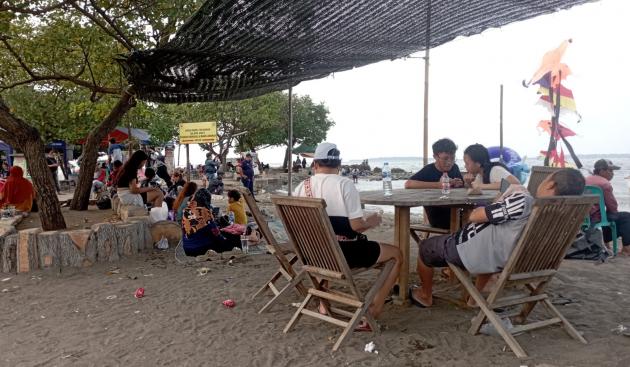 Ramainya wisatawan masih menjadikan Pantai Tanjung Pasir sebagai lokasi favorit untuk menghabiskan waktu cuti bersama libur Iduladha.