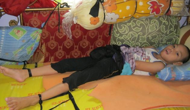 “Kondisi Riyansyah sudah diperlakukan seperti itu sejak usianya dua tahun. Kami juga sedih. Tapi mau bagaimana lagi, kalau kami lepas saja sedikit, dia pasti membenturkan kepalanya ke tembok, atau memukuli tubuhnya, atau sesekali dia menarik telinganya atu kemaluannya sampai terluka. Jadi, terpaksa kami mengikatnya,” jelas Roudhatul, ibunda Riyansyah sedih.