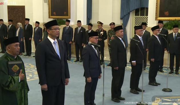 Acara pelantikan juga dihadiri Wakil Presiden Gibran Rakabuming Raka serta sejumlah pimpinan lembaga negara.