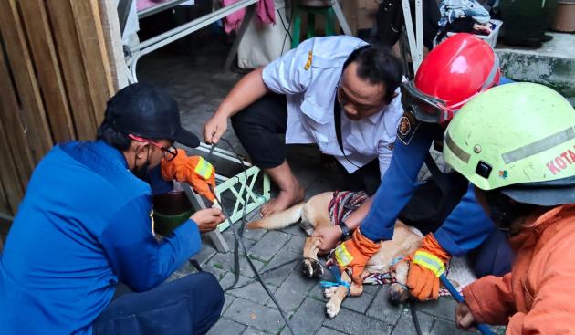"Alhamdulillah saat kami mendapatkan laporan, tim kami langsung terjun kelapangan untuk melakukan evakuasi anjing tersebut," ujar Asep.