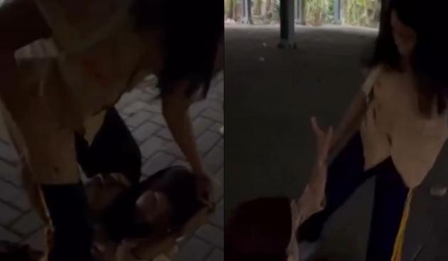 Dalam video tersebut terlihat korban mengenakan yang kerudung ditarik hingga jatuh lalu dipukuli dan ditendang berkali-kali.