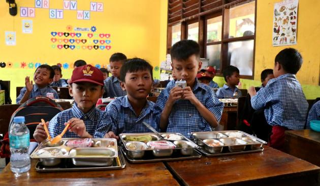 Siswa SD Negeri Curug Kulon IV, Kabupaten Tangerang menerima makanan bergizi gratis (MBG).. (@TangerangNews / Istimewa)