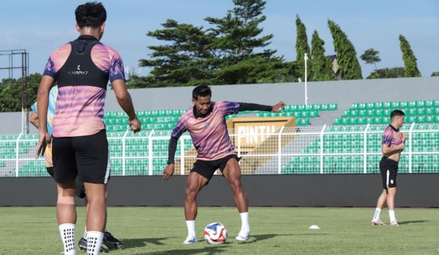 Pemain Persita Tangerang latihan jelang melawan ke markas Bhayangkara Presisi Lampung FC di Stadion Sumpah Pemuda, Sabtu 1 November 2025, besok, pada pekan ke-11 BRI Super League 2025/26. (@TangerangNews / Istimewa)