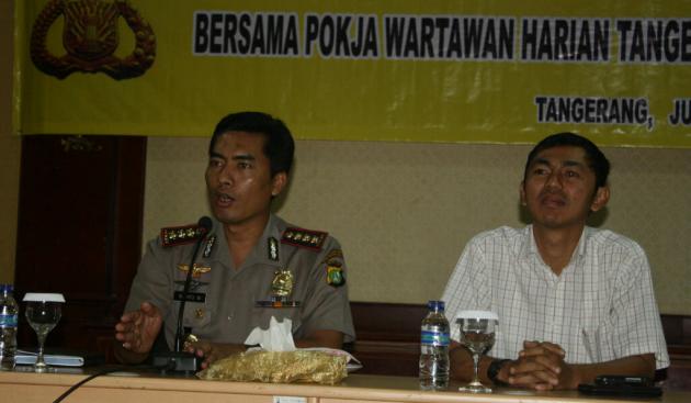 Kapolres Metro Kota Tangerang Kombes Pol Wahyu Widada dengan Ketua Pokja Wartawan Harian Tangerang Denny Irawan. (tangerangnews / dira)